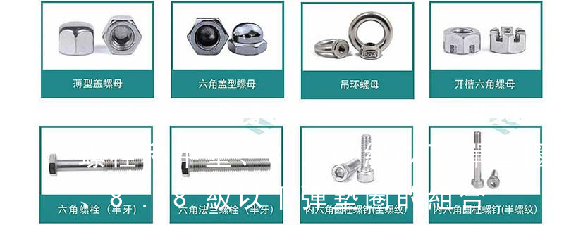 11. 組合件和連接副:組合件是指組合供應的一類緊固件,如將某種機器螺釘(或螺栓、自供螺釘)與平墊圈(或彈簧墊圈、鎖緊墊圈)組合供應;連接副指將某種專用螺栓、螺母和墊圈組合供應的一類緊固件,如鋼結(jié)構(gòu)用高強度大六角頭螺栓連接副。12