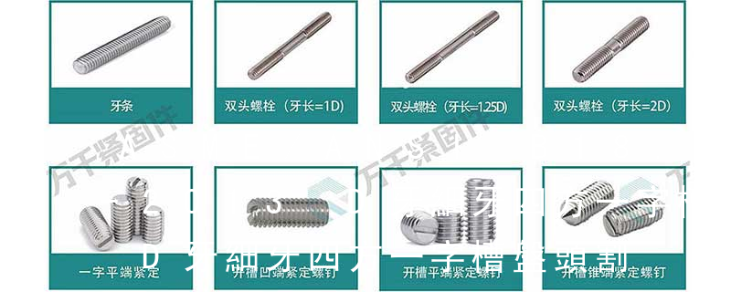 (鐵板牙自攻螺絲) B-2: Plastic Tapping Screw. (塑膠用,自攻螺絲) C: Wooden Screw : 木工螺絲 D: Drywall Screw :水泥墻螺絲 E: Self Drilling Screws鉆尾螺絲(不銹鋼鉆尾螺絲,復合材料鉆尾螺絲) F:膨脹螺絲,四片膨脹螺絲又 3.螺釘:也是由頭部和螺桿兩部分構成的一類緊固件,按用途可以分為三類:機器螺釘、緊定螺釘和特殊用途螺釘。機器螺釘主要用于一個緊定螺紋孔的零件,與一個帶有通孔的零件之間的緊固連接,不需要螺母配合(這種連接形式稱為螺釘連接,也屬于