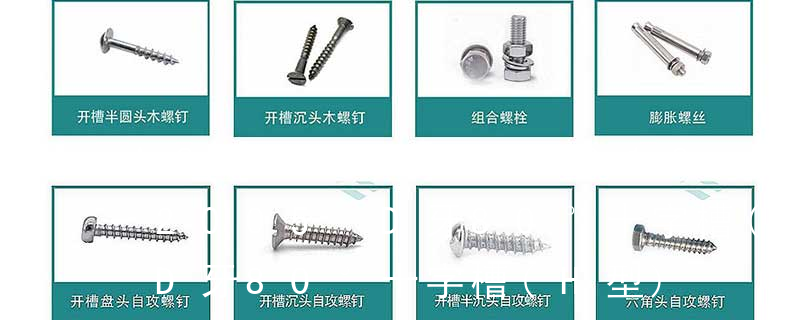 (鐵板牙自攻螺絲) B-2: Plastic Tapping Screw. (塑膠用,自攻螺絲) C: Wooden Screw : 木工螺絲 D: Drywall Screw :水泥墻螺絲 E: Self Drilling Screws鉆尾螺絲(不銹鋼鉆尾螺絲,復合材料鉆尾螺絲) F:膨脹螺絲,四片膨脹螺絲又